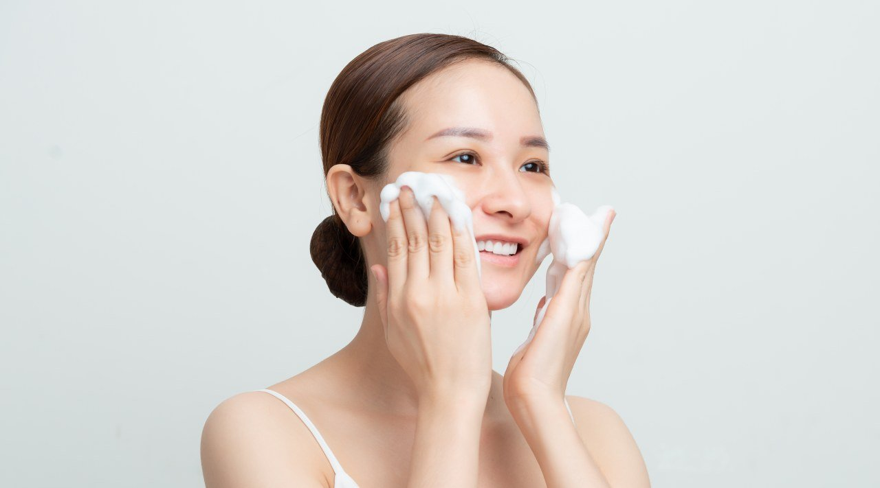- Massage nhẹ nhàng: Áp lớp bọt lên mặt và dùng các đầu ngón tay massage nhẹ nhàng theo chuyển động tròn từ trong ra ngoài, từ dưới lên trên trong khoảng 60 giây. Hãy tập trung kỹ hơn ở vùng chữ T (trán, mũi, cằm) nơi thường tiết nhiều dầu.